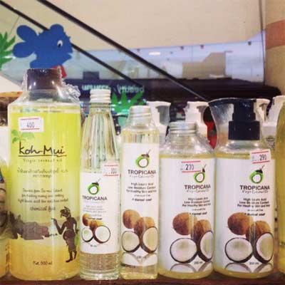 Los cosméticos a base de aceite de coco puedes comprarlos en cualquier tienda de Tailandia.